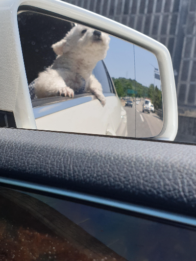 오늘도 구름이는 창문 너머 바람을 온몸으로 맞으며 어디론가 향한다.
